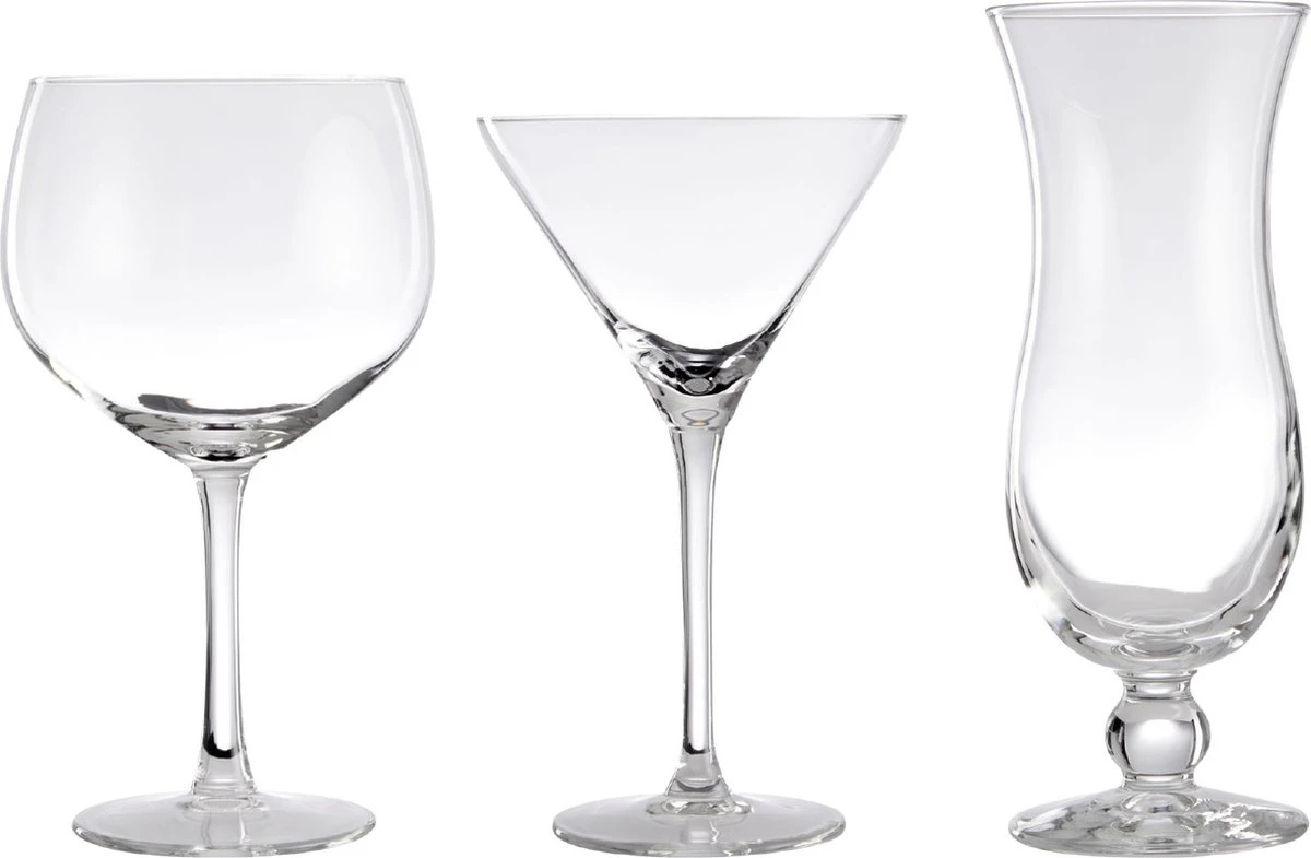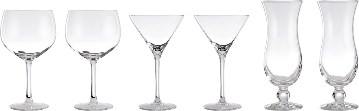 | Verpakkingsinhoud | 2 x Gin glas 64 cl 2 x Martini glas 17.5 cl 2 x Pina Colada glas 44cl |