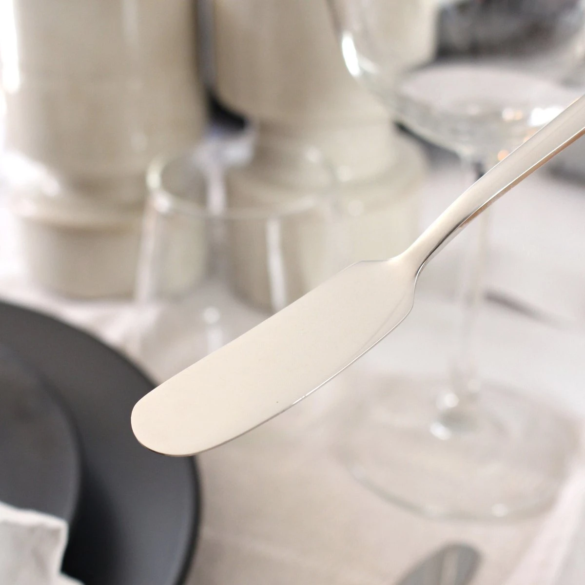 Traditioneel gezien gebruik je een botermes voor het smeren van je boterham. Het lemmet is afgerond zodat je eenvoudig een royale dot boter uit het kuipje schept. De bolle buik van het lemmet maakt het uitsmeren van de boter en spreads tot kinderspel. Aan een mooi gedekte tafelmag een goed botermes niet ontbreken.