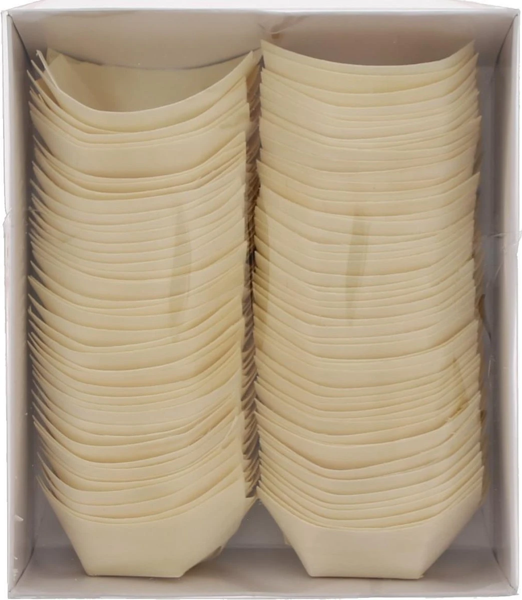 Houten Bakjes En Schaaltjes, Form Bootje 80 X 45 Mm Doos 100 Stuks Bamboe Wegwerp Duurzaam