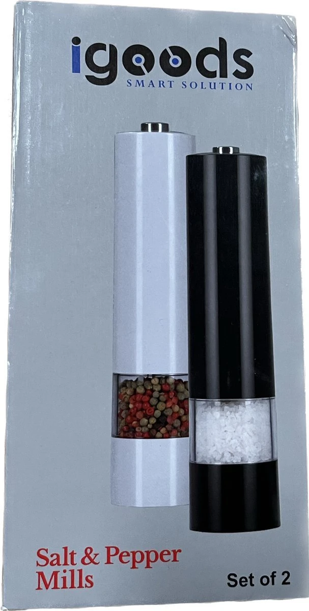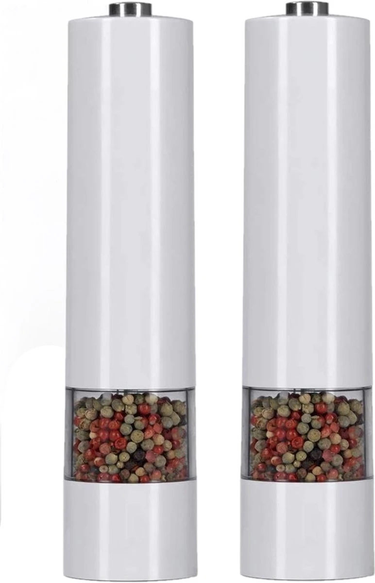 IGOODS Keramiek Elektrische Pepermolen En Zoutmolen – Pepermolen – Zoutmolen – 2 Stuks- Wit