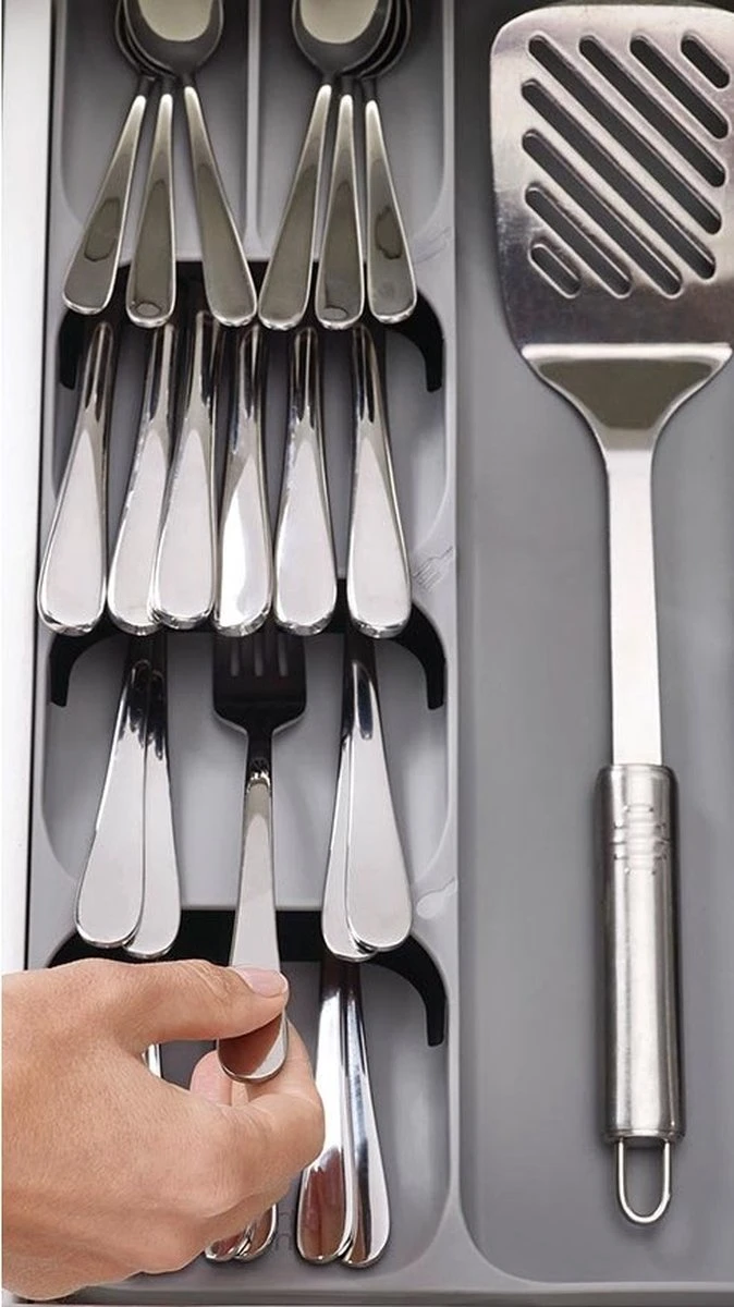 Al je bestek handig op één plek met deze bestekbak van het merk Joseph Joseph. Door het unieke design van deze keukenlade organizer creëer je extra ruimte om al je bestek, keukengerei en keukenaccessoires netjes te sorteren. Het stijlvolle design past goed bij iedere keuken.