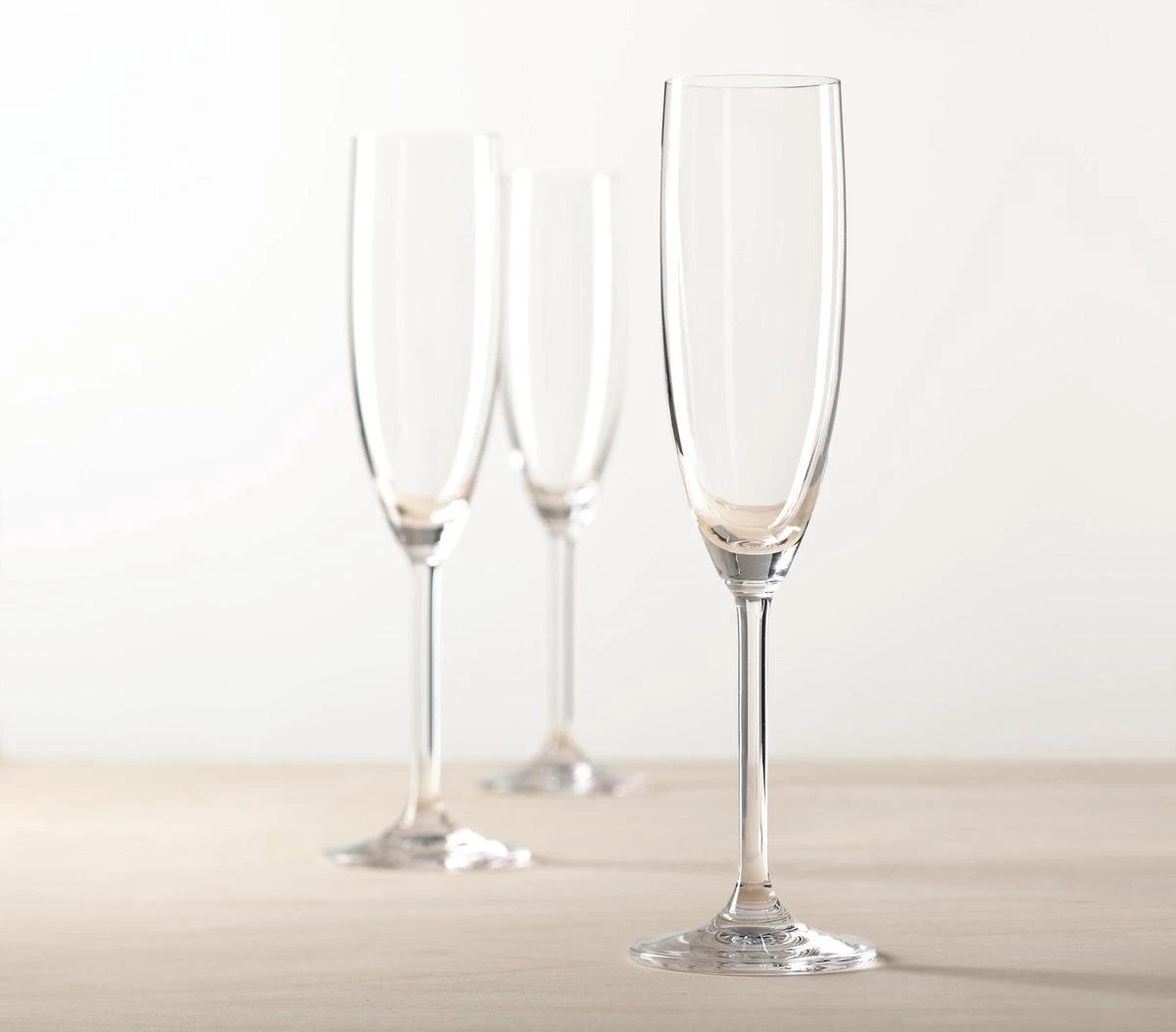 Leonardo Champagneglazen Daily 20 clDeze Leonardo champagneglazen die behoren tot de Daily collectie zijn erg veelzijdig. Net zoals de naam zich doet vermoeden zijn de glazen zeer geschikt voor dagelijks gebruiken evenals gebruik bij speciale gelegenheden. Naast het feit dat de glazen vaatwasserbestendig zijn, zijn ze ook nog kras- en breukvriendelijk. Dit komt omdat de glazen zijn gemaakt van TeQton glas. Een glassoort dat kristalhelder is en een mooie klank geeft.