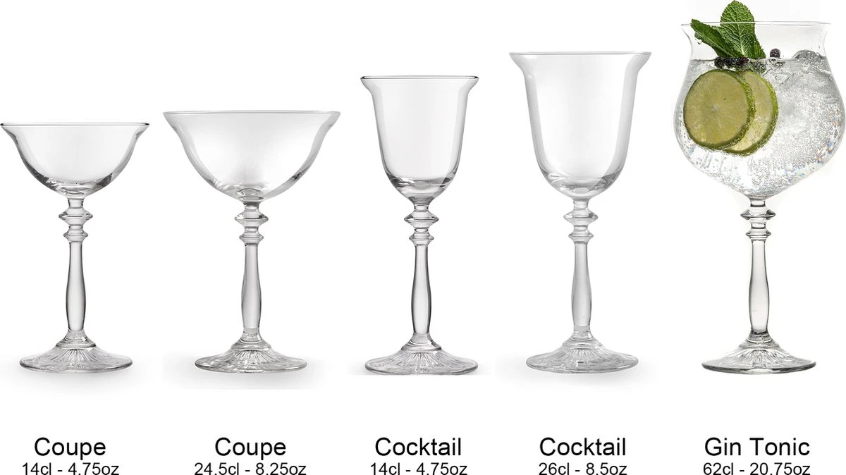 Wanneer je een gin tonic of cocktails drinkt, doe je dat toch wel uit prachtige glazen? Ben jij op zoek naar een uniek cocktailglas voor jouw (thuis)cocktailbar waarin je bijvoorbeeld een gin tonic serveert? Deze prachtige vintage gin & tonic cocktailglazen 1924 van Libbey combineren de flair uit de jazz tijd met de allernieuwste cocktailtrends.