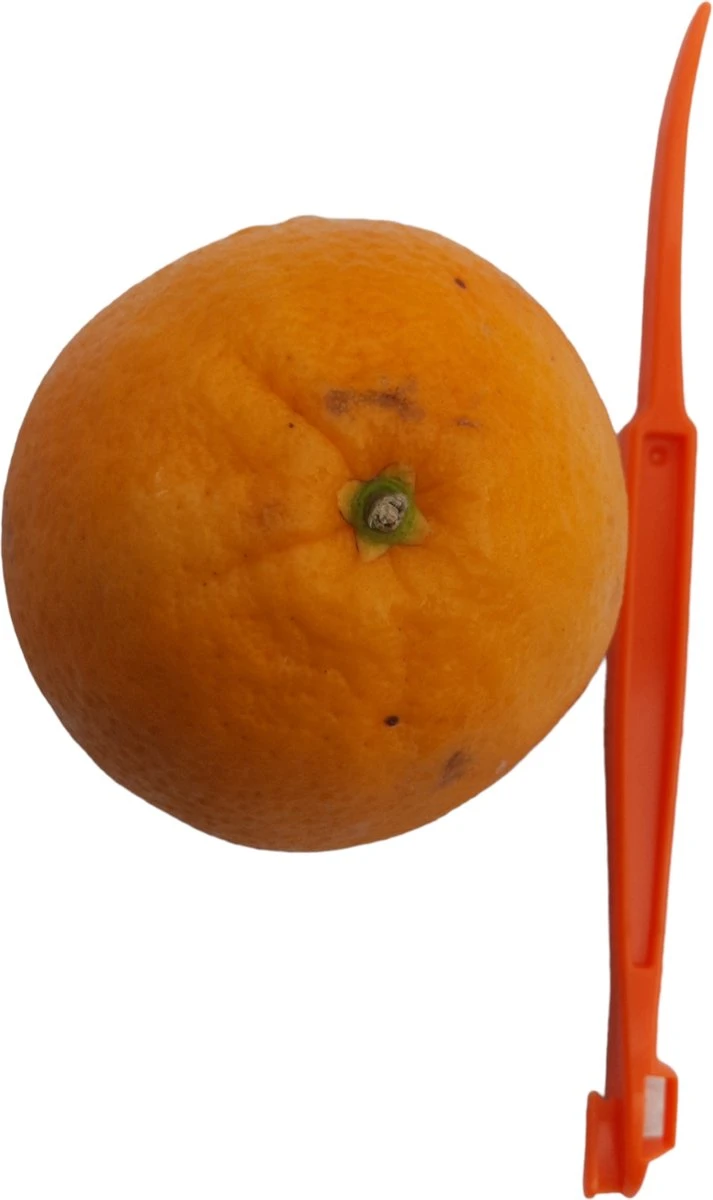 Geen geknoei met een mes maar veilig en schoon met de MCH Quality sinaasappelschiller.