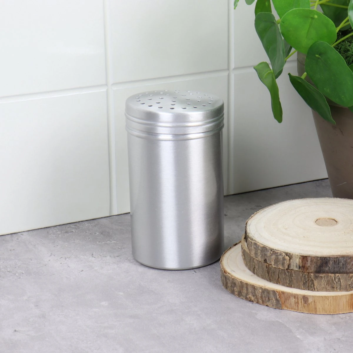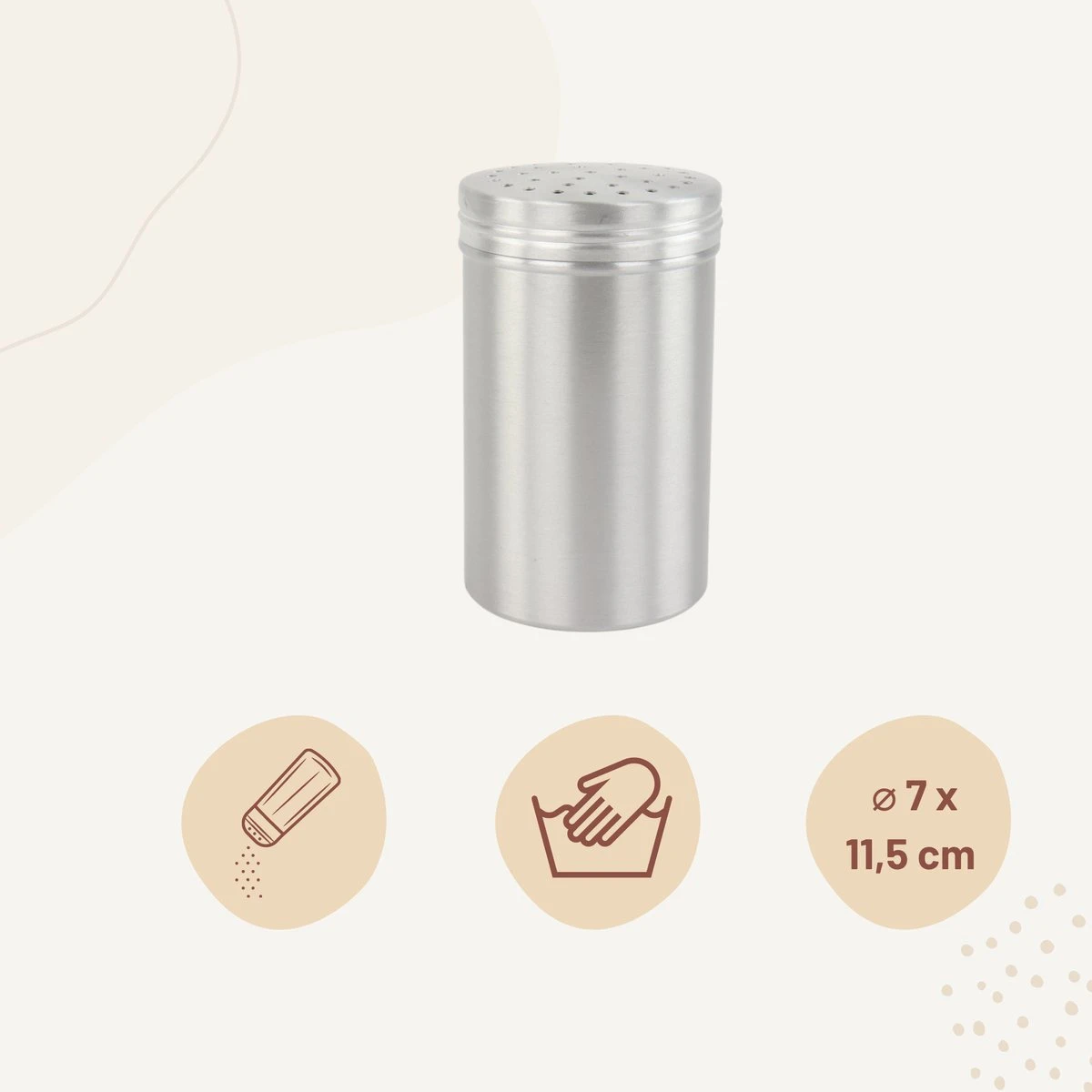 Met de Orange85 zoutstrooier kan er makkelijk zout gestrooid worden over het eten. De Zoutstrooier is gemaakt van aluminium en heeft een zilveren kleur. Het straat strak in de keuken en kan een grote hoeveelheid zout bewaren. Kan niet in de vaatwasser.