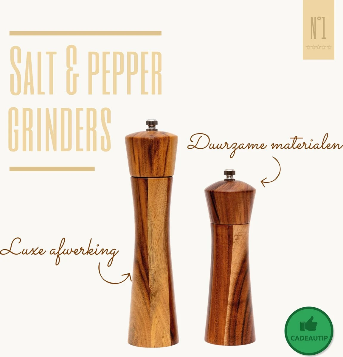 Een mooie finishing touch voor op tafel. Een luxe peper en zoutmolen set gemaakt van Acaciahout!