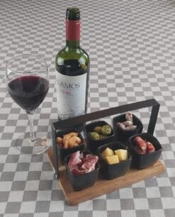 Hapjes Tapas Draaiplateau Hout Met Wit Melamine Schaaltjes – Serveerplank Borrelplank