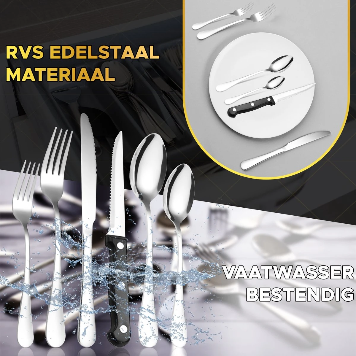 Toivo Kitchen Bestekset 4 Persoons – 24 Delig – Lepels Messen Vorken & Steakmessen – Vaatwasserbestendig – Zilver / RVS – Serviessets