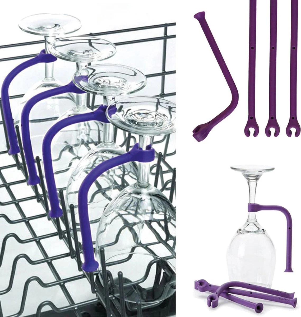 Nooit meer gedoe in de vaatwasser? Nooit meer wijnglazen die door de vaatwasser heen gaan? En nooit meer gebroken wijnglazen in de vaatwasser? Met deze Wijnglashouders speciaal voor in de vaatwasser voorkom je dit allemaal. Deze houders zijn gemakkelijk te bevestigen in iedere vaatwasser.